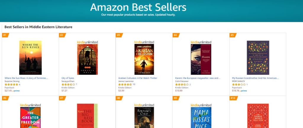 Hey guys, In Australia Where the Sun Rises was number 1 Best Seller in Middle Eastern Fiction. 🙂 I was stoked!
